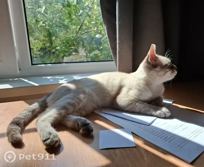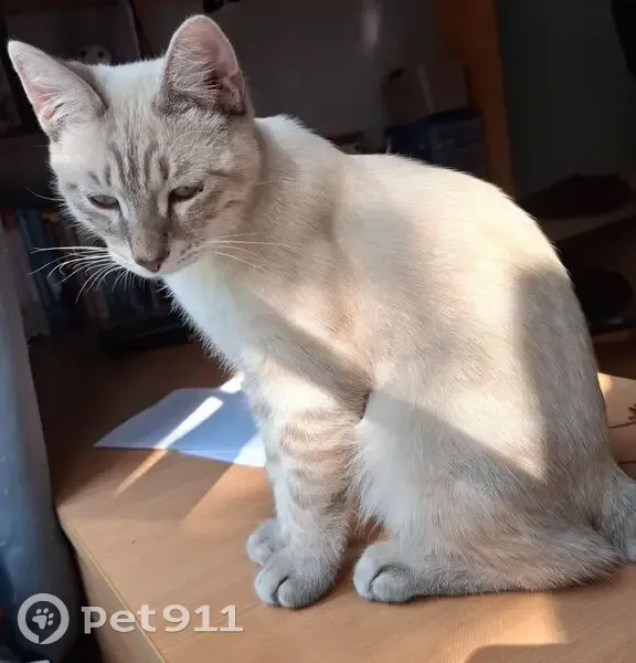 Котик, похожий на породу тайская кошка. Молодой и худенький кот. Длинный носик. Большие ушки. Песочный окрас, бежевые и серые оттенки шерсти. Глазки серо-голубые. Очень ласковый и игривый. Третий день громко мяукает во дворе, сейчас находится в доме. Ищу хозяина!