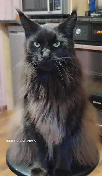 Ухоженный, добрый, ласковый. Окрас черный, пушистый. Прибежал к людям сам. По возрасту около года (+-) К лотку приучен, очень игривый.