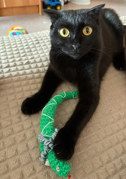 Найдена кошка. Окрас черный, на животе белая полоска, маленькая, около двух лет, очень ласковая. Сидела у подъезда.