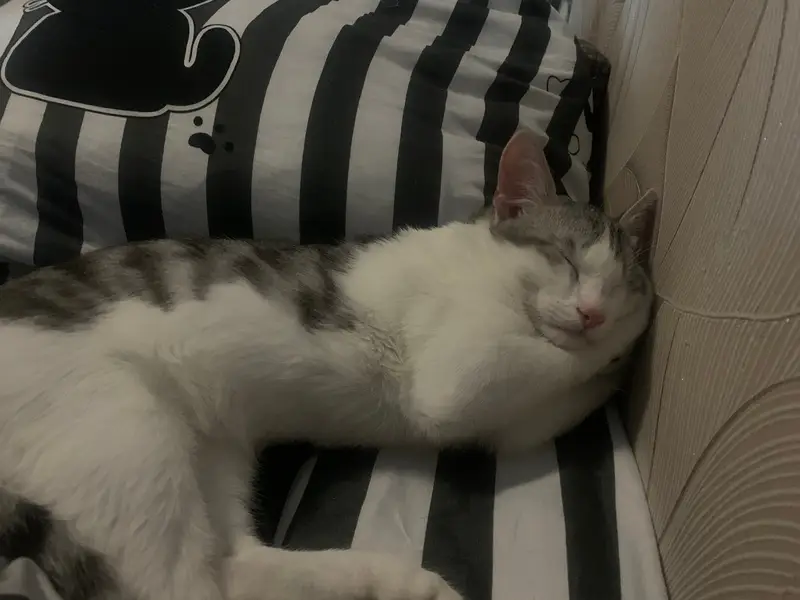 На лапке и брюшке есть небольшие рамки. Нашли сегодня возле дома, бегал за людьми и жалобно мяукал...