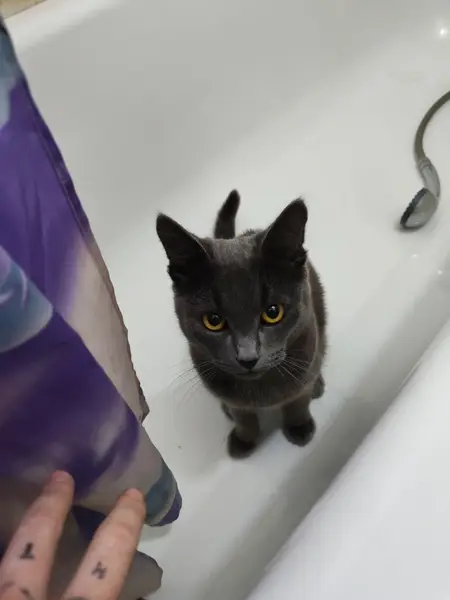 Кошечка,подросток.Порода русская голубая.К лотку приучена,ласковая.Сидела у подьезда по улице Ковровская 10 и плакала.Очень контактна-сразу идет на руки.Полностью здорова.