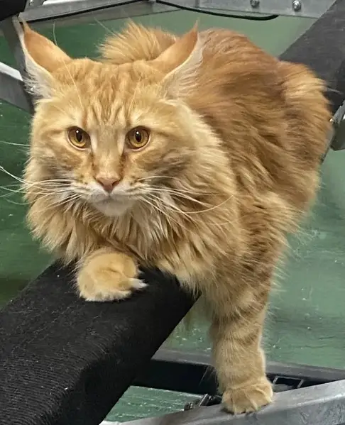 Утром 6-00_6:30 гуляя с собаками , обнаружила шикарного кота. Предположительно Мей Куна. Большой рыжий с мраморным рисунком на боках. Сидел под кустом , мои собаки его напугали.Надеюсь его не выкинули , а ищут.