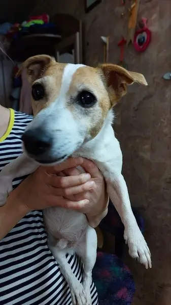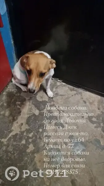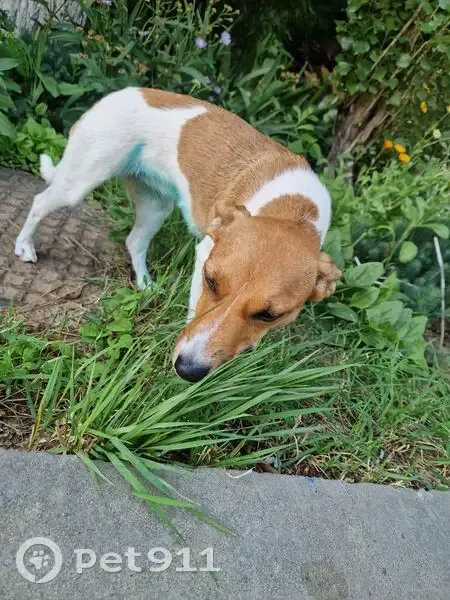 НАЙДЕНА СОБАКА. ДЕВОЧКА. До года видимо. Предположительно помесь Джек Рассела. На грудной клетке рана, то ли покусана собаками, то ли удаляли ей что-то. Живот в зелёнке.