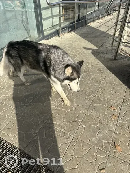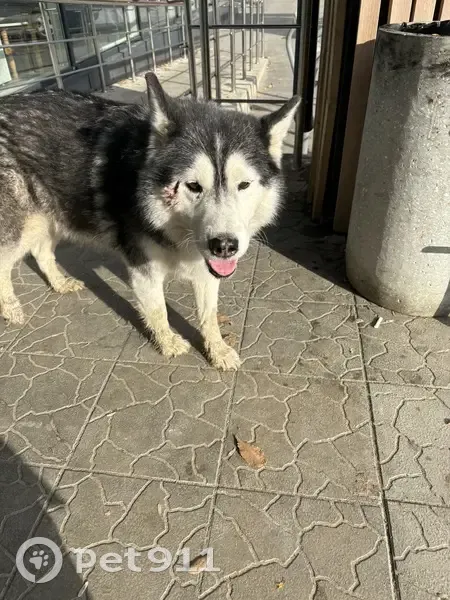 Около магазина Пятерочка по адресу Университетский проспект 70 встретился хаски Пол не знаю На контакт не идет, но и не убегает, интересуется запахом шаурмы из соседнего киоска Лапы грязные, морда с раной Ошейника не видно