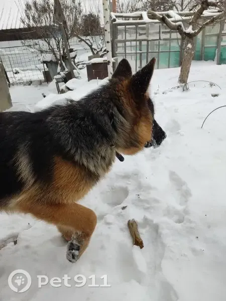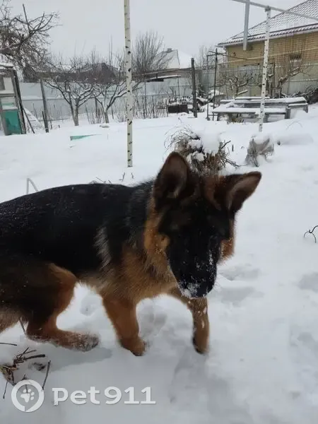 Овчарка, довольно молодая девочка. Спина, нос чёрные , лапы рыжие, воротник с проседью Была растеряна и явно искала хозяина. Общительная, ласковая. Бегала на улице Базарова (Краснооктябрьский район, олежкина слобода) между магнитом и озоном. Собачка ухоженная, в синем ошейнике