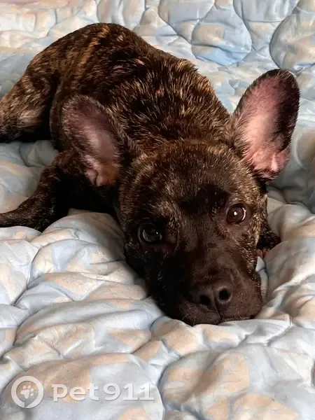 Щенок, месяца три, похож на Стафа. На шее был силиконовый ошейник, яркого цвета. Питомец замерз, рядом никого не было , пожалел приютил. Надеюсь хозяева отзовутся.