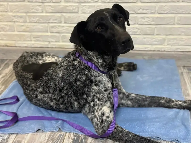 Собаку взяли на передержку пока не найдётся хозяин, либо пока кто-то не заберёт в добрые руки. Щенок ласковый около года. Жалко. Окрас черно-белый, собака похожа охотничью. Предположительно дратхаар. На шее остался след от ошейника. Шерсть чистая и ухоженая.