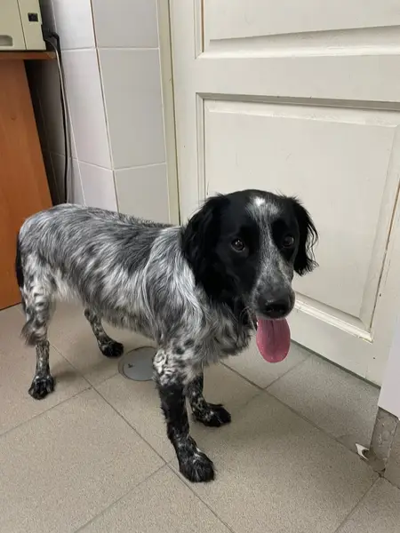 Спаниэль мальчик окрас черно белый возраст около года на шее ошейник чёрного цвета (оборван). Появился на посёлке 3 дня назад Сильно напуган. Прячется под машиной зелёного цвета. Хозяева отзовитесь. Волгоград Красноармейский район ул. Танеева д. 2