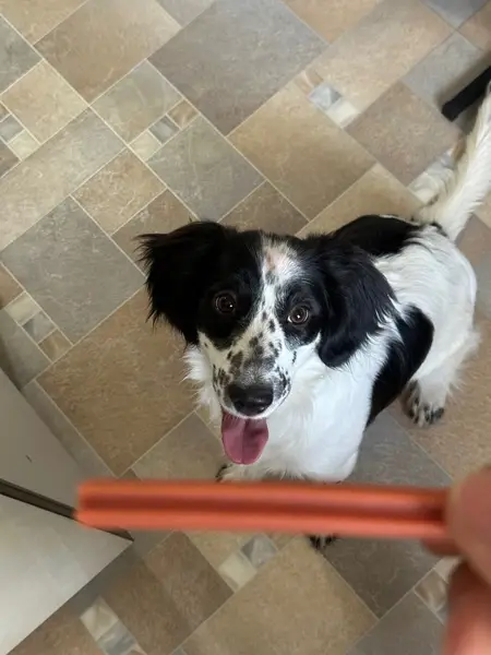 Пришёл утром к воротам, в ошейнике, пол мужской,окрас на фото, похож на спаниеля, ушастый