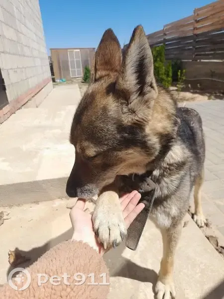 Есть толстый ошейник. Собака пугливая, но достаточно быстро привыкла и перестала прятаться. Агрессию не проявляла. Постоянно пыталась дать лапу после того, как её покормили, и стали гладить по голове