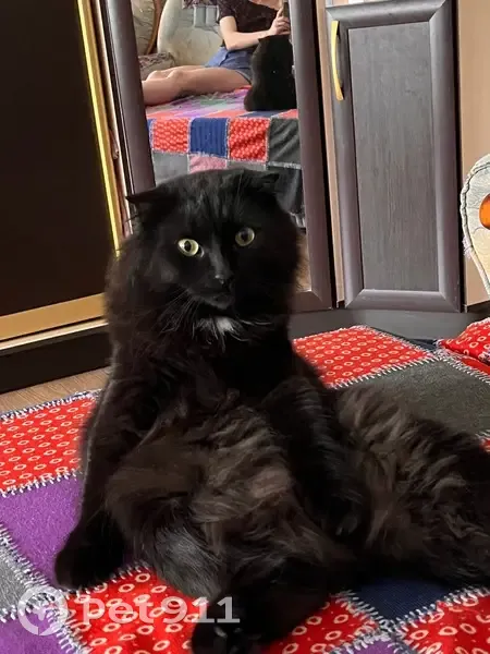 Пропал кот, хвост очень пушистый, окрас черный, вислоухий, бежит на звук корма, очень ласковый, белое пятнышко на груди, на животе слегка прилизанное место. Жил у матери, но убежал на улицу, узнала об этом недавно, убежал по ее словам около 1-1,5 мес. Назад