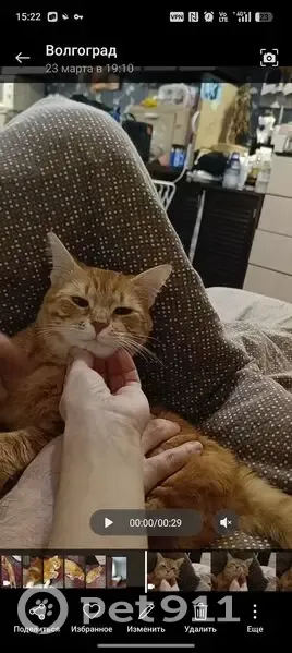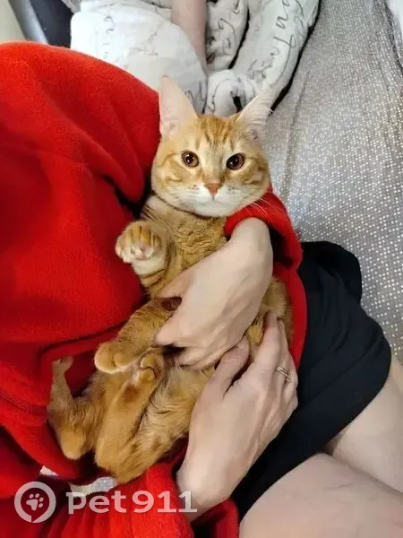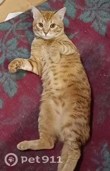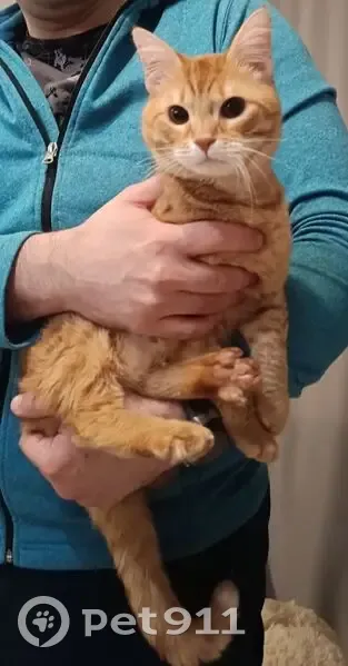 Окрас рыжий, глаза коричневые, очень любознательный и игривый, часто издает звук "мррр", он так общается, ухоженый, 6 дней назад был кастрирован, поэтому на задней лапке осталось выбритое место от укола. На вид молодой, это видно сразу, ему 11 месяцев. Незаметно проскочил на улицу, заметили не сразу, район СХИ, жк Новый свет, Комарово, Кирпичный, мог конечно и дальше убежать.