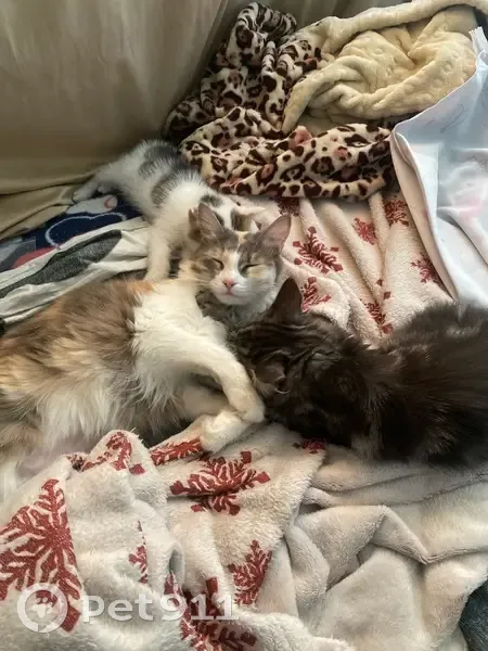 Кошечка , 1 год , не очень крупная , длинношерстая . Грудь белая , но с желтым пятном . Кличка ,, Мышка,, . На кличку не всегда отзывается . На кануне пропажи испачкала передние лапы в фиолетовой краске .