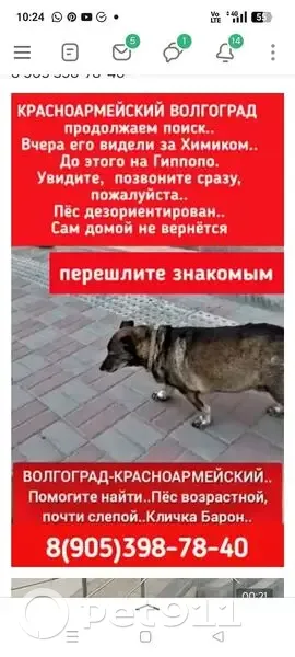 Пропал любимец двора, старенький песик Барюсик, гладкошёрстный, коричневый, полуслепой, хорошо упитанный , собака средних размеров, не чепированный, испугался взрывов. Последний раз видели за дк Химик. Есть даже фото как он идет. Пропал от дк. Хими , ул. Астравская(может горпитомник забрал ?)