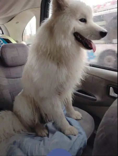 Белая собака породы Самоед. В настоящий момент грязный и потрёпанный (таким его видели соседи в день пропажи). Убежал 14 октября со двора частного дома на ул.Шаблиевской, видели его на ул.Рябиновой и в районе остановки Библиотечная