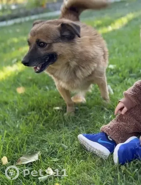 Рыжая шерсть, темный нос, опущенные ушки, невысокий и упитанный. Пропал в ночь с 25 на 26 декабря. Видимо очень испугался громких звуков, пролез в небольшую щель в заборе и убежал