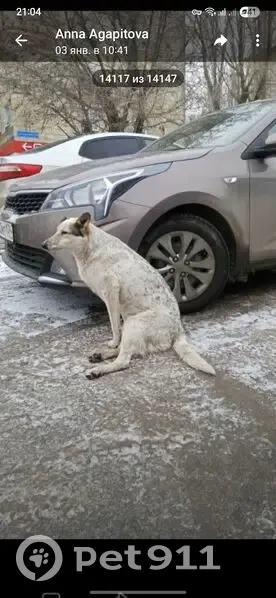 Серебристо, серо-белая, среднего размера, собаке около 4.5 лет. Пугливая, никогда никого не обижала, не ко всем подходила, только тех кого знала. Стерт нос, шишка на голове. Одно ушко вниз висит. Дзержинский район. По предварительным данным вывезли в Краснооктябрьский район. Ищем любую информацию, собака в беде. Сбила машина якобы со слов девушки, что ее вывезла в вет клинику и потом на Красный. Ищем кто мог забрать собаку.