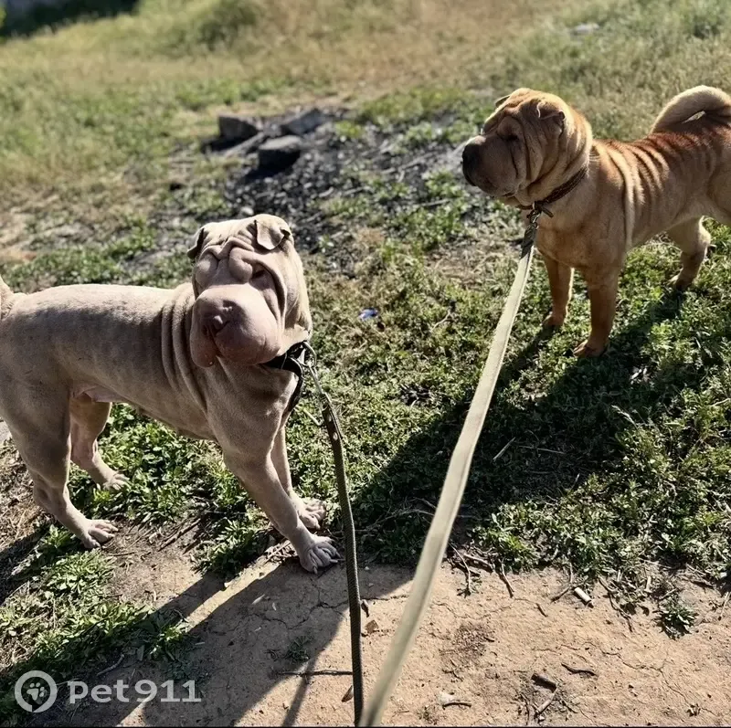 Шарпей кобель кличка Дизель ,Золотисто коричневый/коричневые глаза/ короткошерсный . Поздно вечером 7.01 приверно в 23:15 , на прогулки сорвался с поводка побежав за стаей дворовых собак , враждебно относиться к бездомным собакам , к людям не агрессивен , но сам не подойдет будет держаться по дальше , убежал не один , будет с 2я девочками Шарпеями ,клички Лилу , Летти