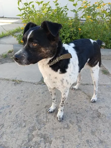 Общительный, дружелюбный. В ошейнике. Любит запрыгивать в машины.
