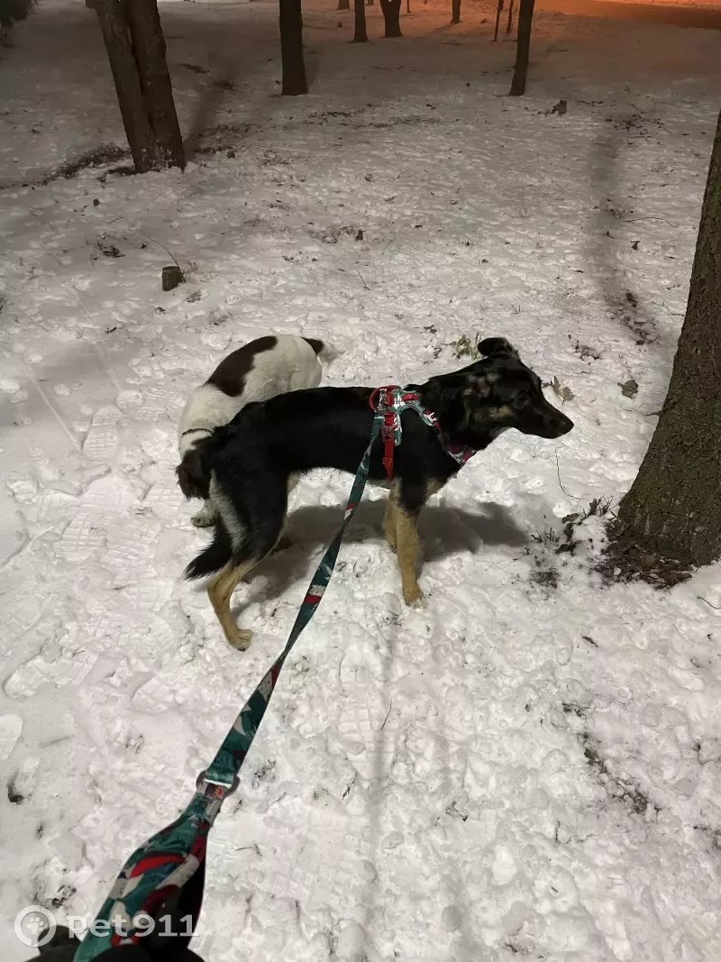 Собаку зовут Юми. Девочка соедних размеров. Черная, лапы и грудь и живот светлые. 31.12.2022 в районе парк хауса возле какта мы возвращались домой с прогулки примерно в 19:30. Вдург сзади начали запускать салют метрах в 30. Испугавшись собака выскользнула из шлейки и со всех ног побежала всторону армянской церкви.
