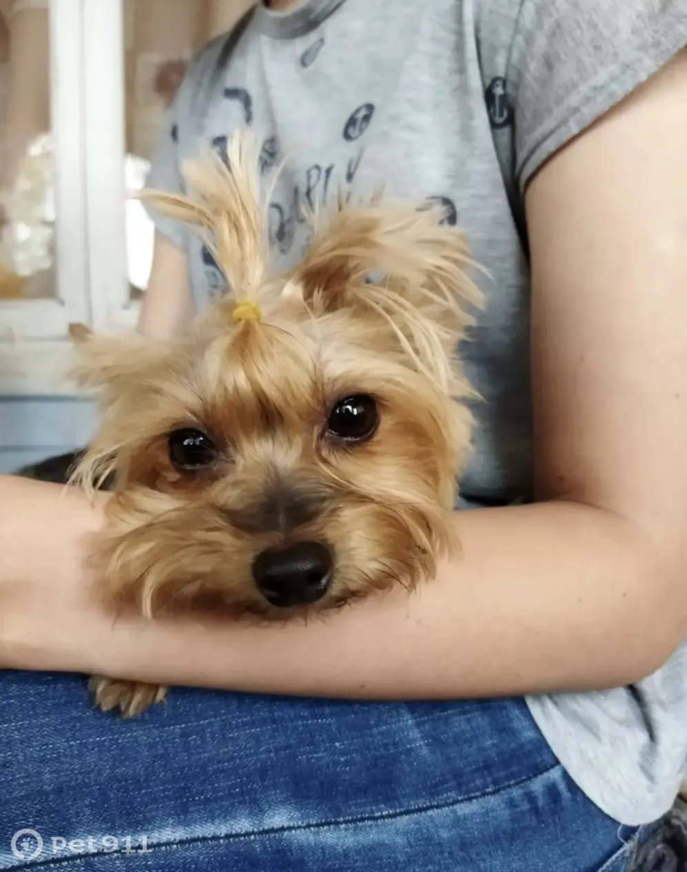 Пропала собака, породы йоркширский терьер, девочка. Отзывается на кскс. Сбежала со двора пока нас не было дома вместе с кошкой, (кошка вернулась собака нет) , без ошейника, т.к старый порвался, новый надеть не успели. На голове колтунный хвостик. Дружелюбная, людей не боится, но в состоянии испуга может рычать. На улице