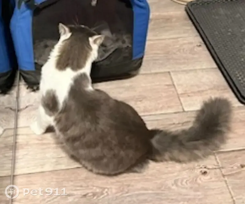 Окрас серый с белым.Хвост пушистый. Ласковый, не пугливый, но с незнакомцами осторожный. Кастрирован. Возраст 2 года. Чипирован. Чип находится в районе холки или лопатки, так как мог мигрировать. Чип внесен в базу animal. Id. Номер чипа: 643093300094156 Нашедшего просьба вернуть за вознаграждение! Кот ушел с дачного участка в поселке Виновка, СНТ Фрегат.