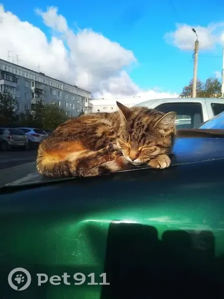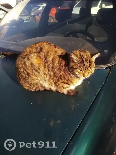 Кошечка (может кот) появилась 4-5 дней назад (Вологда, ул. Поселковая). Ласковая, доверяет людям, т. К. Даёт себя гладить. Греется на капотах машин. Тел. Для связи +7(921)231-76-50.
