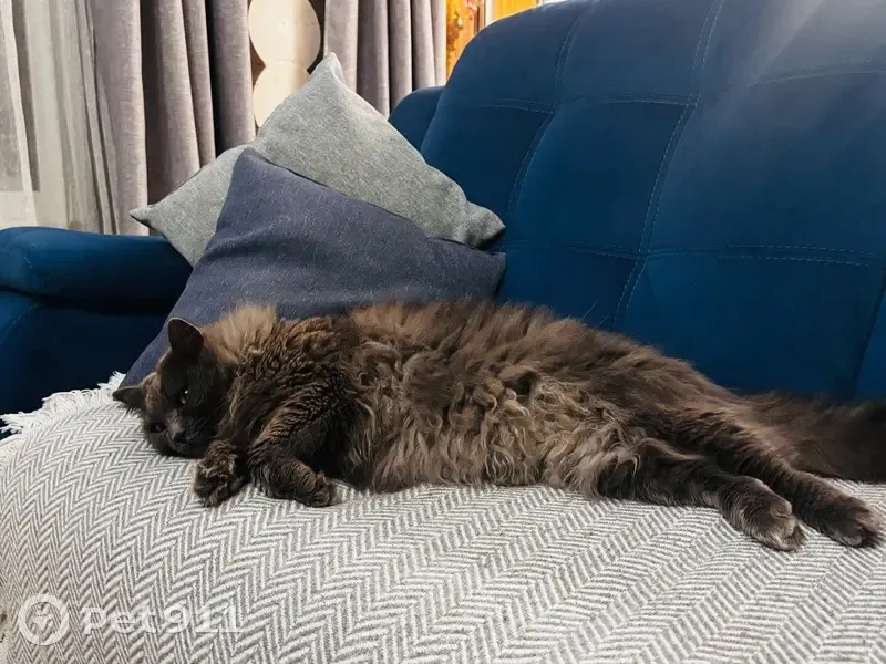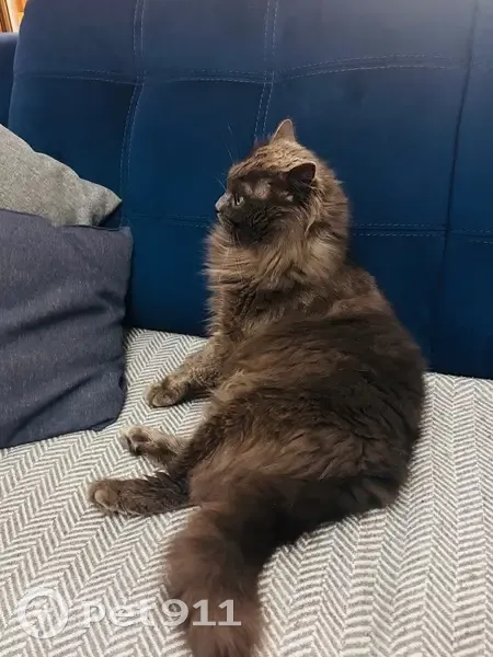 Найден молодой крупный кот, окрас серый, шерсть очень мягкая, явно домашний. Кот общительный, людей не боится, ходит в лоток. Нашли в ноябре в районе ул. Ершовской/ Ботанический сад. Контакт для связи+79115260808