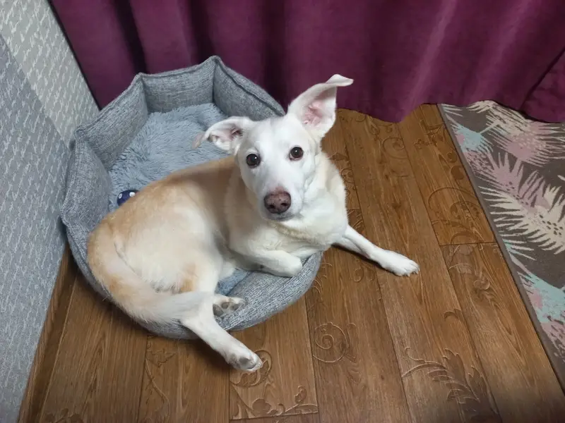 Дружелюбная, кости немного выступают, потерялась давно или не докормлена.