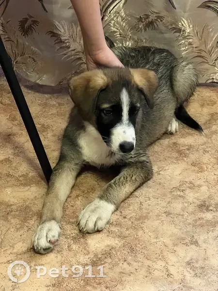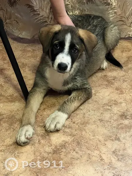 Серый с белым,мальчик,возраст до года.Не особо голодный,но замерз.Без клеймо,ошейника.