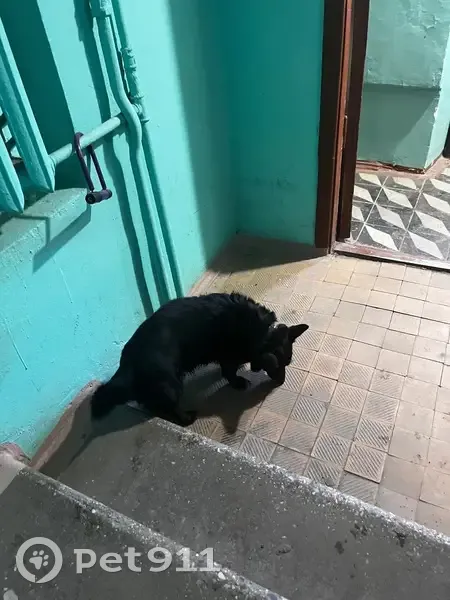 Черная окраска, коротконогая, зелёный ошейник, бегает у дома октябрьская 6 город Вологда, забежала в подъезд понюхала и вышла обратно