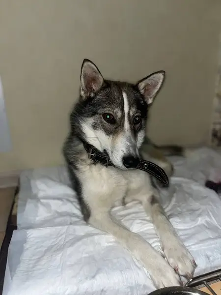 Найден шенок, метис хаски в районе Возрождения-Ярославская. Домашняя, с ошейником и рулеткой. Послушная, тянется к детям. Ищем хозяев, если не найдутся, в субботу будем пристраивать. тел. 50-10-26, ,