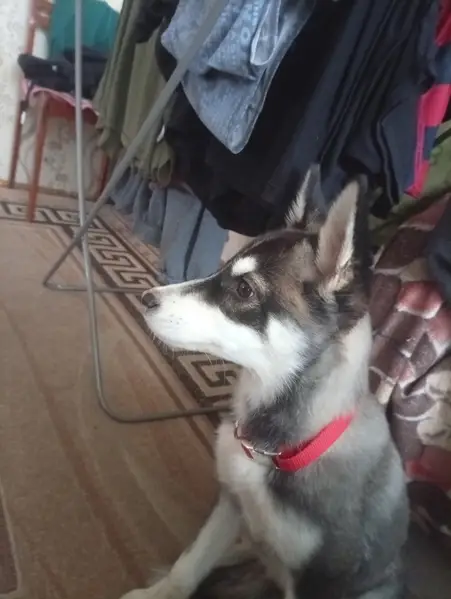 Найден щенок. предположительно метис хаски и маламута. Запутался в заборе рулеткой. Щенок домашний, хозяева отзовитесь!