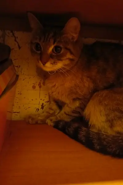 Кошка возрастная, 19 лет, домашняя, маленькая, плохо слышит и видит, на левом глазике как будто пелена. Гладкошерстная, полосатая, окрас серый с песочным, небольшая рыжинка. 21 августа ориентировочно в 9.00 упала с балкона 2го этажа, видели очевидцы, посидела немного и пошла вдоль дома, возможно травмирована.