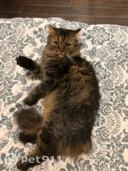 Пугливый, на людей на выходит даже знакомых , если звать, ходит с осторожностью Окрас коричнево-черный, хвост пушистый , сам длинношерстный, похож на Сибирского Кличка «Жора» Мог выбежать из комнаты по указанному адресу.