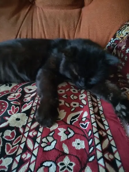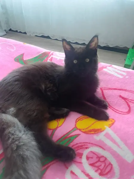 Большой взрослый черный пушистый кот. Без ошейника, без чипа, не кастрированный. Найден сбитым на дороге, с черепно-мозговой травмой в луже крови. Отвезен в ветеринарную клинику. Оказана необходимая первая помощь. Сейчас кот в тяжёлом состоянии, но стабильный и, слава Богу, живой.