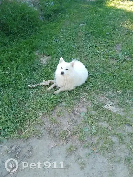Собака бегает уже больше недели в д. Захарово, Вологодского района. Бегает за машинами. Наверное, ищет хозяев. Ухоженная, чистенькая собака. Дала погладить.