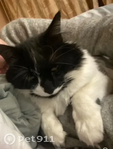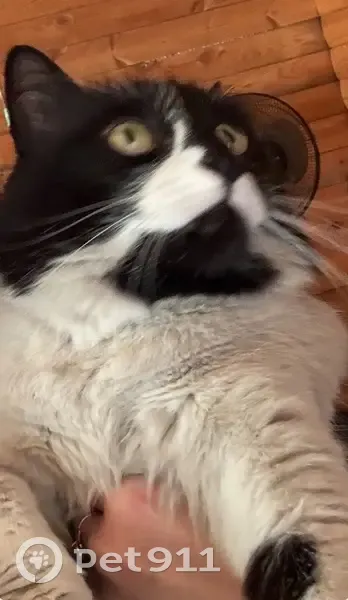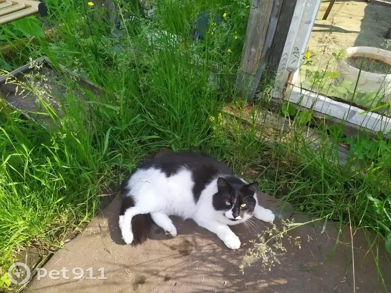 Особые приметы:окрас черно-белый ,носик с горбинкой,усы и бровки белые и пушистые) Возможно хромает на лапку,так как за ней побежала собака и ей пришлось запрыгнуть на дерево(затем она спрыгнула.На участке в деревне,ее в последний раз видели 12 июня( Она очень хорошая охотница и любознательна