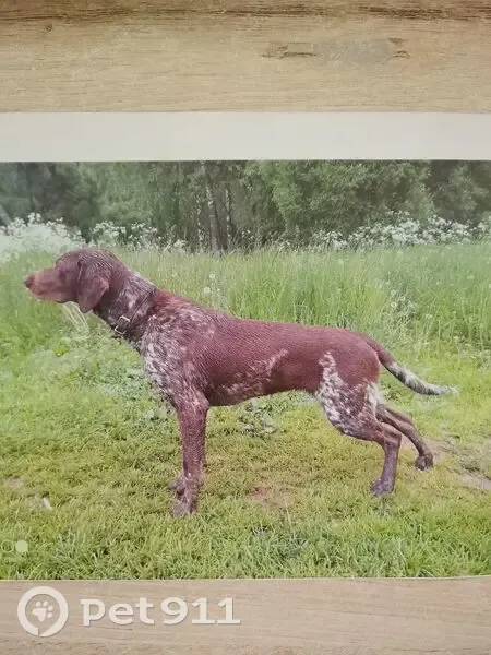 Пропала собака порода Курцхаар. В коричневом ошейнике. Пропала во время прогулки по лесу. Доброжелательная. На кличку откликается.