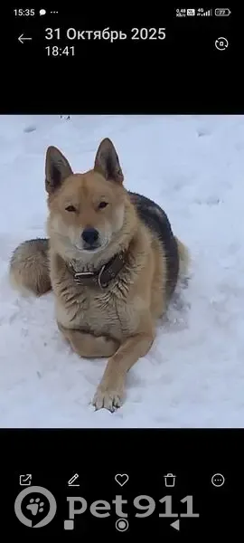 Убежал в Кирики улиты . Сейчас может находиться где угодно. Рыжий, белая грудь ,черная спина. Брезентовый широкий ошейник. Бывают приступы эпилепсии. Ласковый .
