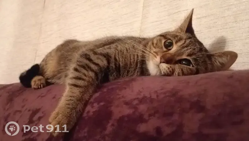 Серая-коричневый оценок в чёрную полоску, присутствуют пятна на бëдрах, хвост в полоску, гладко-шерстяная , уши и глаза(жëлтые) большие, усы белые длинные , подушечки лапки чëрные