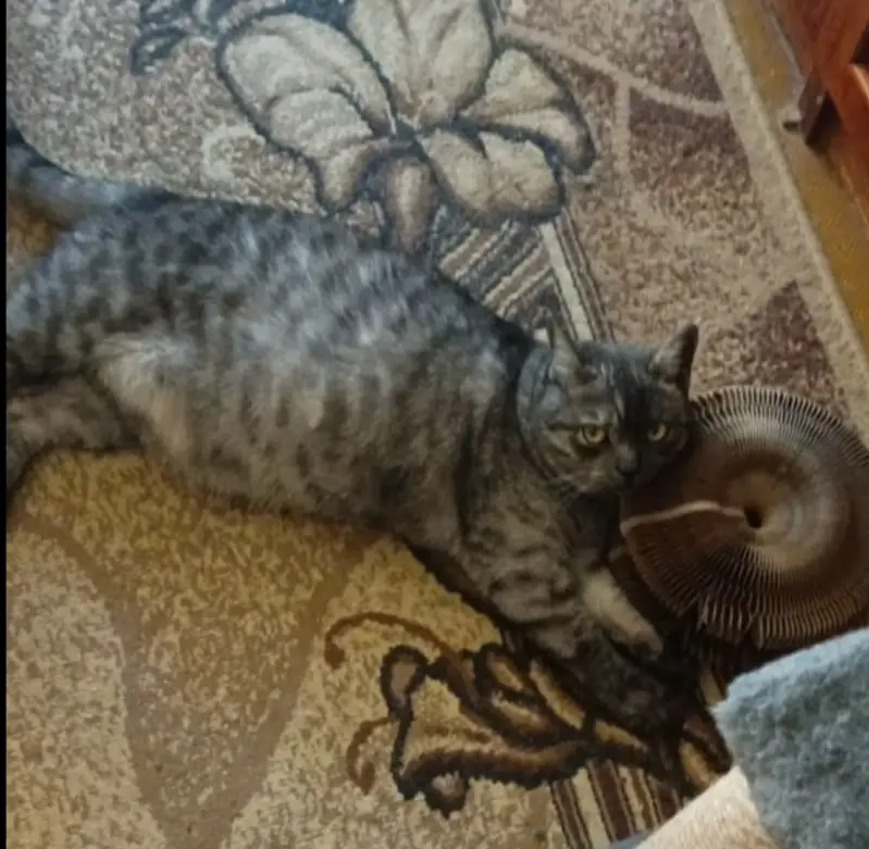 Нашли котенка, район Заря у бани, ему примерно пол года, мальчик, вислоухий, окрас черно-серый в полоску, ухоженный, скорее всего потерялся. Звонить по телефону , .