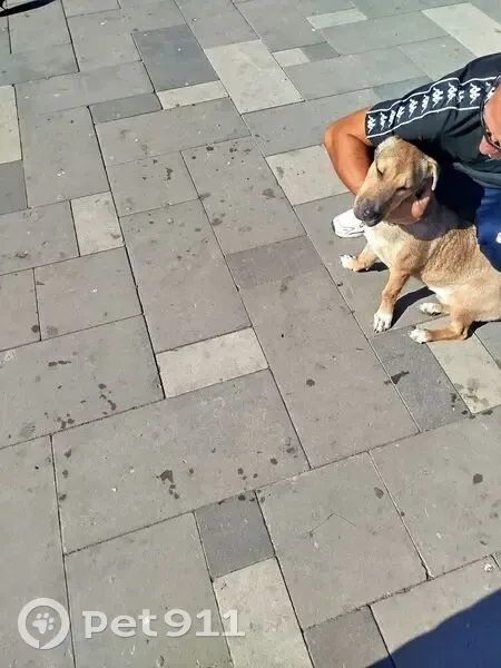 Собака, мальчик, песочного цвета, породистая , ошейник голубого цвета, скорее всего небольшой возраст. Два дня бегает на площади возле магазина Магнит в 18 мкр по улице Мира,42в