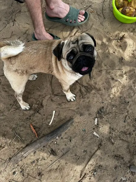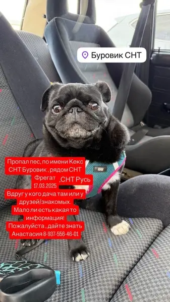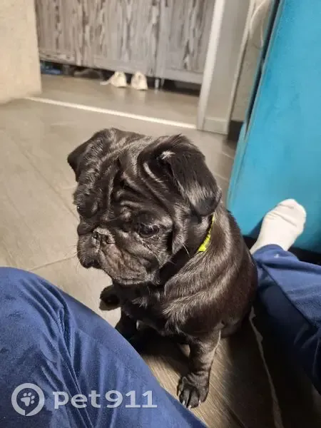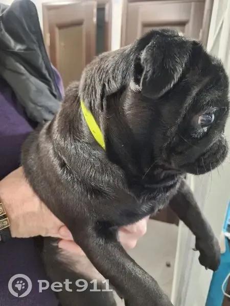 Нашли мопса, девочка, в 16 микр., в магазине пятёрочка, ищем хозяина.