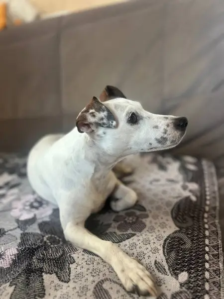 Потерялась в 18 микрорайоне порода джек-рассел-терьер полностью белая, но левое ухо коричневое .ушки подняты. Потерялась около 9 школы Им Харламова ЮП примерно в 16:30. Пожалуйста кто нашел , дайте знать. За вознагрождение.