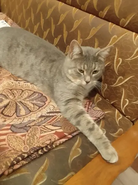 В районе улицы Тихорецкой возвращалась с 55 маршрутки, привязался котенок, пришел до дома. Не уходит, по виду явно домашний, кошечка, очень ласковая, ошейника не было