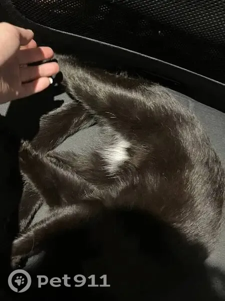 Уточнения по внешнему виду: около 1 года, черного окраса, пара белы- волосинок на груди и белое пятнышко на животе между задних лап, оранжевые глаза с теплым подтоном