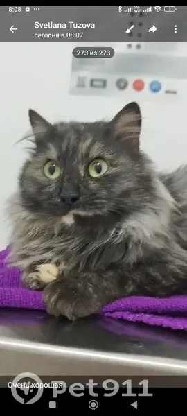 Город Воронеж Кошку нашли на даче 18 декабря 2025 года на Дальних садах ул. Крайняя и Полевая. Кошка пушистая молодая, ей годик или около двух, окрас черепаховый трёхцветная. Кошка ручная, домашняя, прибежала из соседнего сада, услышав разговор по телефону. Была голодная, дрожала. Кошка худая, но из-за пушистой шерсти такой не кажется. Кошка очень спокойная, когда везли в машине на ручках- спокойно сидела без переноски и ни разу не пикнула. Мы кошку простерилизовали, делаем прививки и анализы. Кошка сейчас на передержке, ищем новых или старых хозяев, если они её не бросили замерзать на даче.