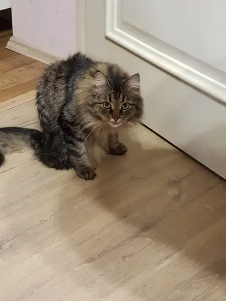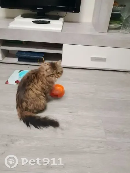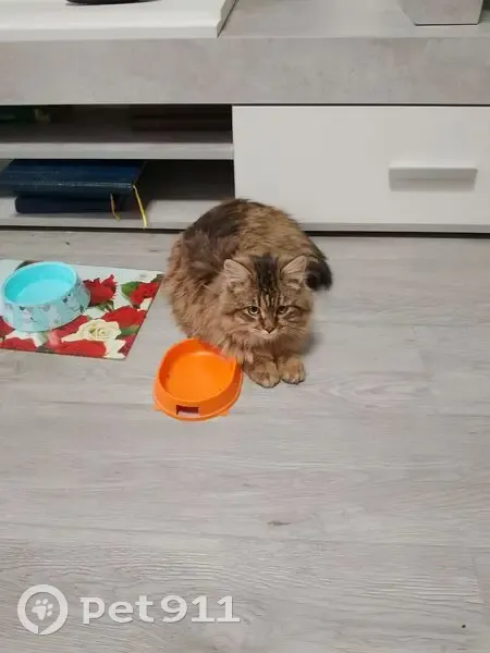 Найдена кошечка,окрас трехцветный,сидела в подъезде.Чисьпя, ухоженная, очень ласковая.Приученна к лотку.Взяли на передержку.У себя оставить нет возможности.У меня кот и кошка.Хозяин , откликнись.Она вас очень ждёт.
