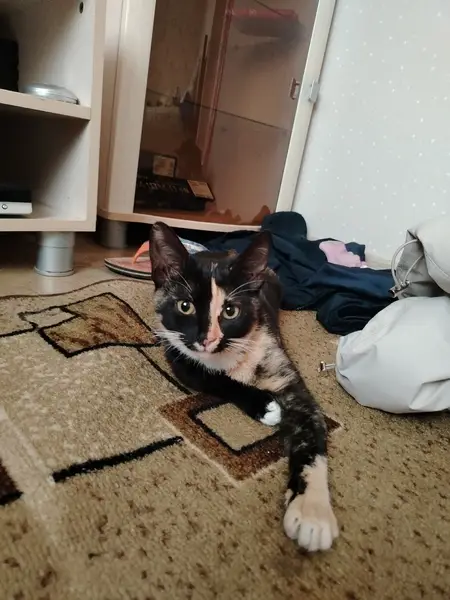 Несколько дней назад во дворе дома появилась кошечка черепахового окраса с яркой рыжей полоской на носике. С виду чистенькая, не голодная, ласковая, людей не боится. Ищем старых или новых хозяев!